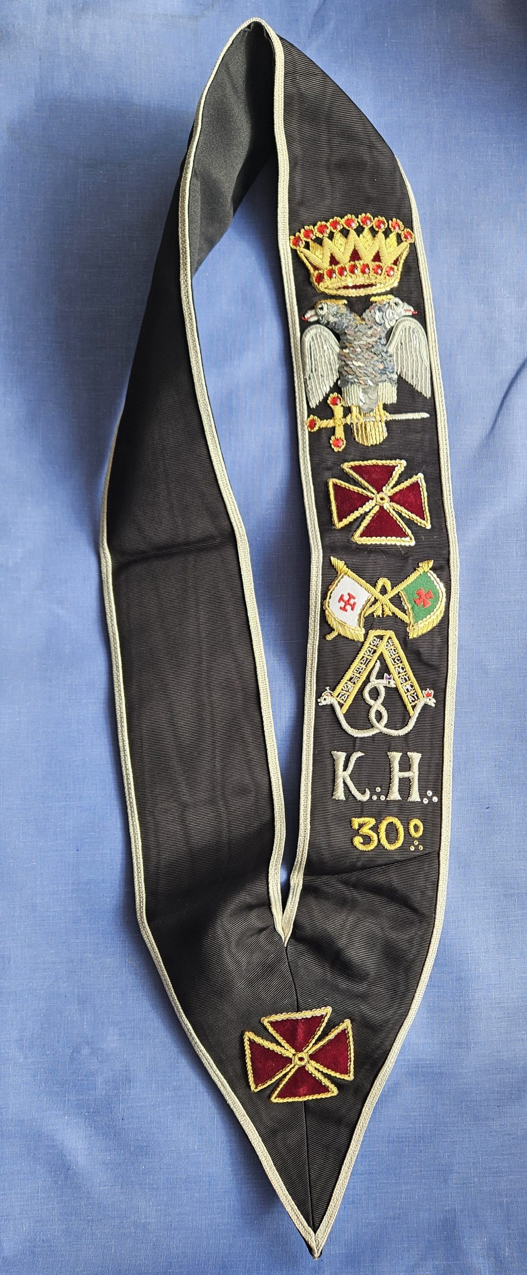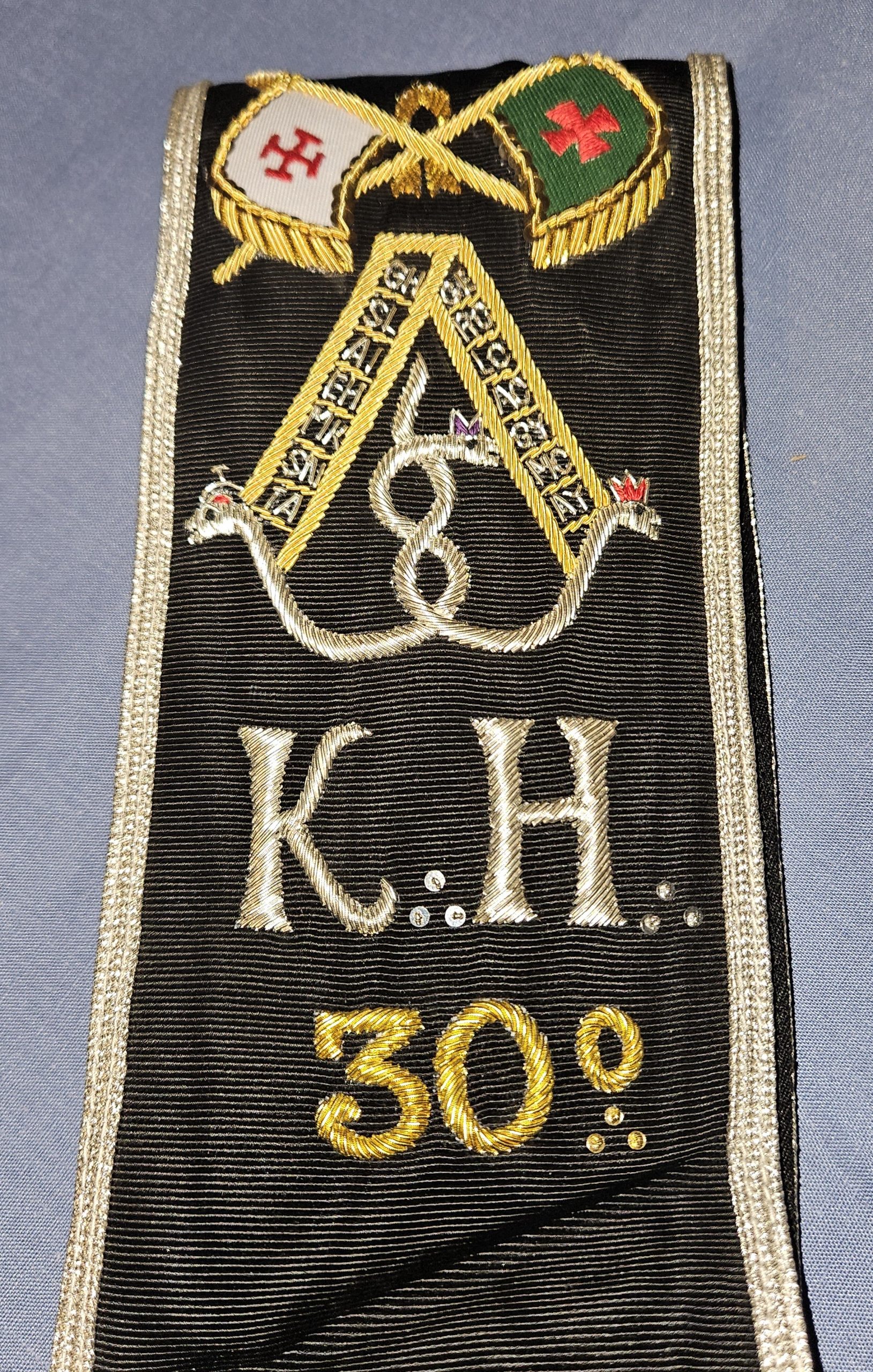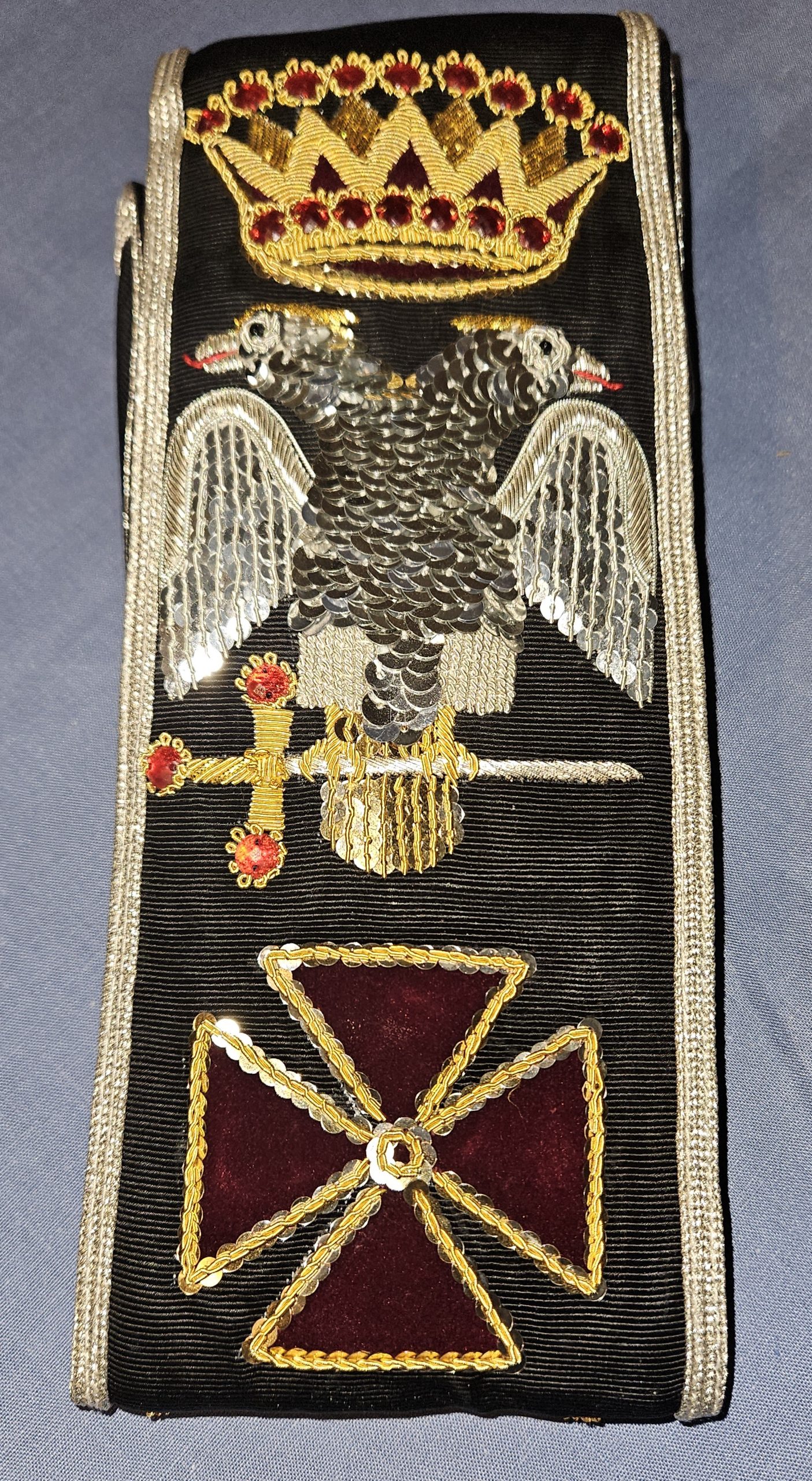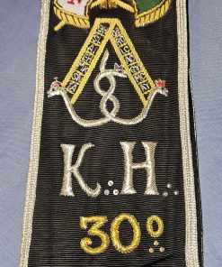 Over the years, certain discrepancies have found their way onto this particular items of regalia. This 30th Degree Sash has been manufactured strictly within the guidelines of the Constitution and Laws. We have taken the time and effort to ensure it is correct and it has been approved by the Grand Secretary General