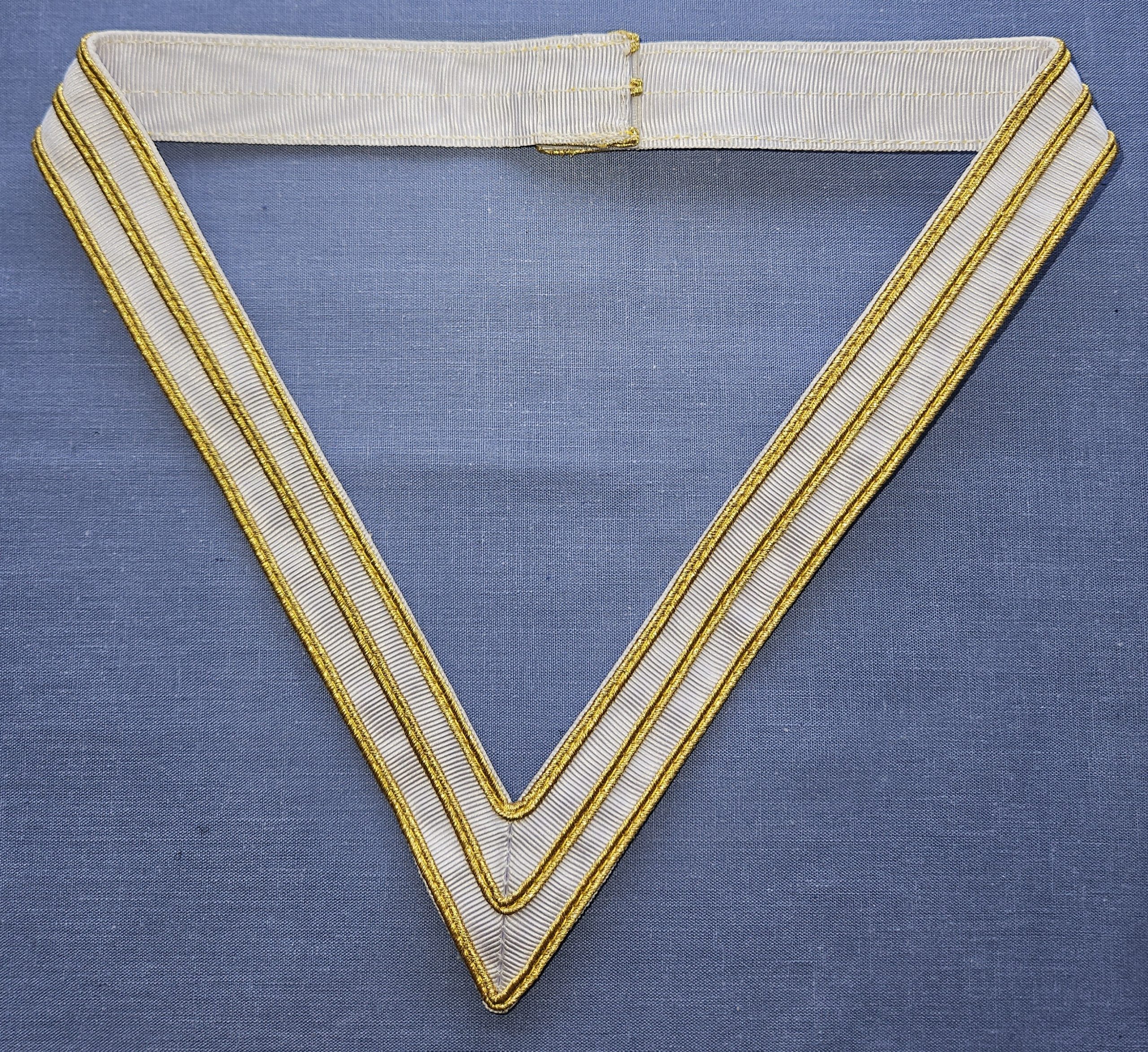 This 33rd Degree 25mm white collarette with gold edges and a central gold stripe complies with the Laws and Regulations of the Order.
