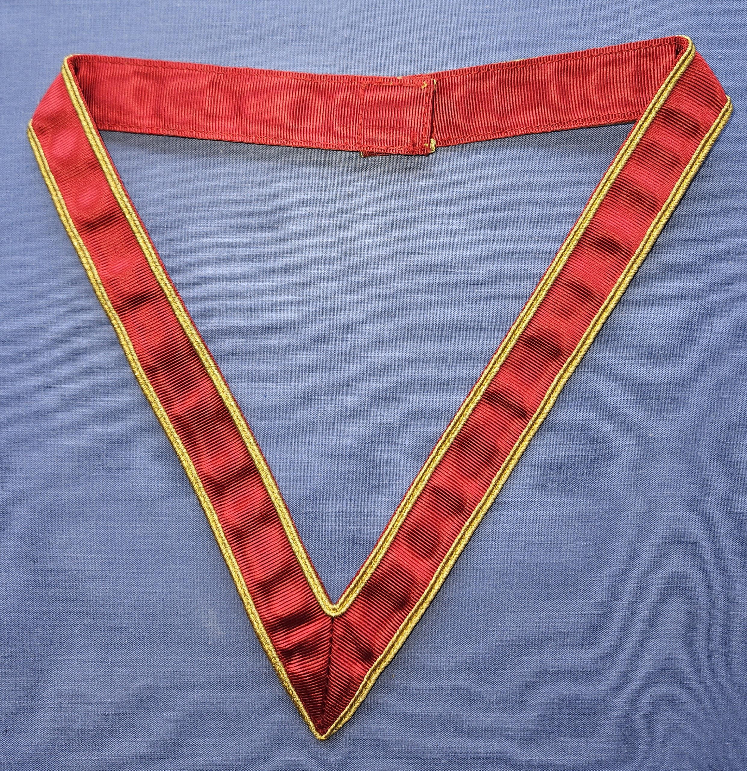 This 32nd Degree 25mm red material collarette with gold edges complies with the Laws and Regulations of the Order.