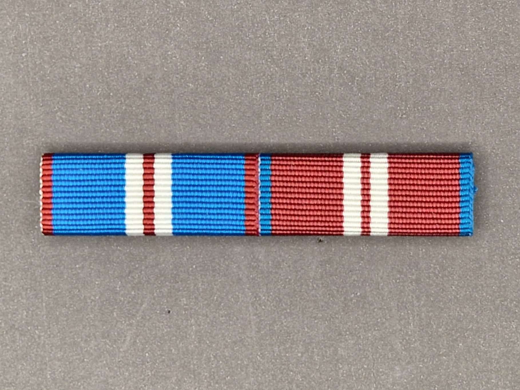 Description – Royal blue with thin red stripes at the edges, a broad white stripe in the centre and a thin red stripe down the middle