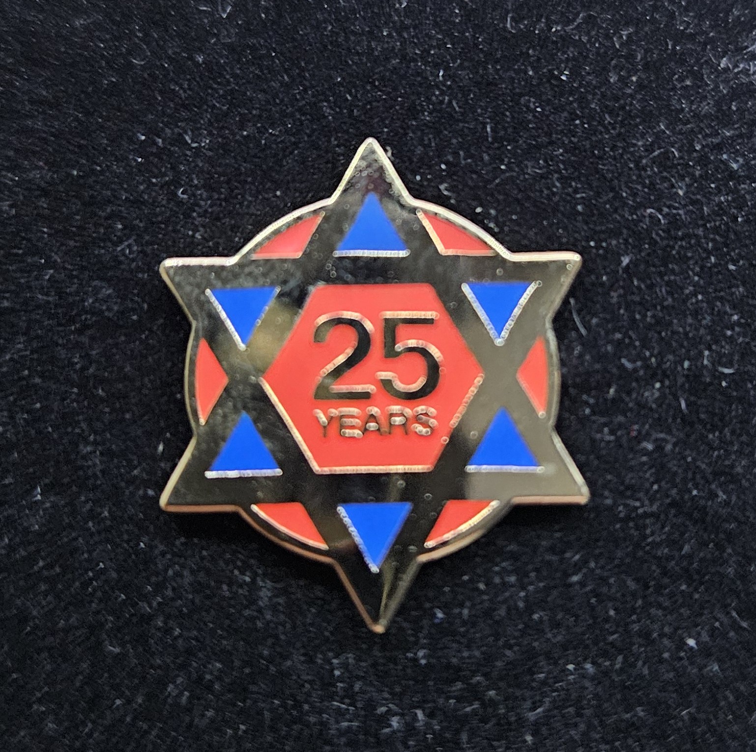 To celebrate 25 Years as a Royal Arch Mason this lapel pin has been made in the UK, by our skilled crafts persons to the highest quality and has a butterfly clip to the rear.